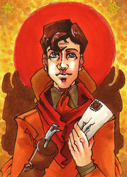 I'm doing some ATC trades with people, and here's three I've gotten done. I have two more to go. These are on bristol cards that are 2.5x3.5 inches so they're fairly small. I use copic marker to do them (and white ink). They're a fun little challenge to see what I can feasibly fit on such a small size and still make look good.